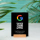A simple custom black 5x7 business tabletop wood block stand print sign in a modern minimalist style, designed to feature a scannable QR code that links directly to your Google Reviews page. This versatile template can be personalized with your company logo, graphic, or photo, along with your QR code and a custom message that encourages customers to share feedback. The review platform logo can also be swapped for Yelp, TripAdvisor, Facebook, or any other site to create a bespoke and professional design that suits your business. Perfect for cafes, salons, boutiques, offices, and service-based brands, this clean display helps boost engagement and grow your reputation. Tip: Use the free GatherUp Review URL Generator to create a direct link to your review page before generating your QR code.