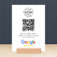 A simple custom white 5x7 business wood block stand tabletop print sign in a modern minimalist style, designed to feature a scannable QR code that links directly to your Google Reviews page. This versatile template can be personalized with your company logo, graphic, or photo, along with your QR code and a custom message that encourages customers to share feedback. The review platform logo can also be swapped for Yelp, TripAdvisor, Facebook, or any other site to create a bespoke and professional design that suits your business. Perfect for cafes, salons, boutiques, offices, and service-based brands, this clean display helps boost engagement and grow your reputation. Tip: Use the free GatherUp Review URL Generator to create a direct link to your review page before generating your QR code.