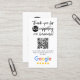 Modern, trendy Google Reviews Request business card. Design features trendy typography script '' thank you for supporting our business'' with your logo, google logo and qr code with review request on the front. Personalize further with your logo, contact details and social media on the back.