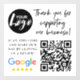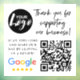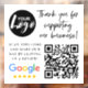 Modern, trendy Google Reviews Request window cling. Design features trendy typography script '' thank you for supporting our business'' with your logo, google logo and qr code with review request.
