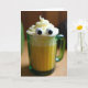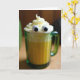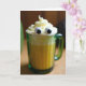 This design shows an emerald-green ribbed mug centered in the scene, holding a two-layer drink with a golden-yellow base and a lighter creamy layer above it. A tall swirl of pale yellow topping rises in soft peaks, and a pair of oversized googly eyes sits near the rim, giving the “face” a cute, flirty look that feels like it’s making eye contact with someone across the table 💚. Warm natural light glides over the glossy mug and the creamy ridges, adding gentle highlights and cozy shadows. The background falls out of focus into soft browns with a faint green hint, keeping attention on the character-like drink ☘️. A short St. Patrick’s Day greeting sits near the top in green lettering, while a smaller line of text rests near the bottom in a matching shade. The mug is placed on a lightly textured wooden surface, with the blurred backdrop framing the bright green cup and the creamy swirl above it.