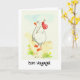A 'Bon Voyage' card with a goose setting out on a journey with its belongings tied up in a red and white spotted handkerchief, from watercolour painting by Judy Adamson. The greeting inside is, 'Have a wonderful trip!'.