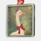 Goose In A Red Bow Christmas Metal Ornament