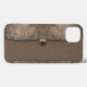 The original handbag design by ZoeSPEAK on this iPhone 13 Case was created from Zoe’s original photograph of a gopher tortoise. The closeup of the shell is used as the upper flap of the bag and the bottom curve, with a fabric background in warm shades of cocoa brown, blending with the earth tones of the tortoise shell. There is a button style golden clasp over the flap of this chic handbag case.