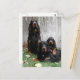 Gordon Setter Generations Postcard. Three Gordon Setters pose in front of wooden fence.