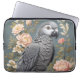 Gorgeous African Grey Parrot With Elegant Florals Laptop Sleeve