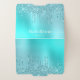 This pretty folder design features faux aqua mint and turquoise dripping glitter metallic texture and elegant calligraphy font.