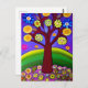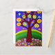Send someone you are thinking about this pretty colorful whimsical artwork postcard. Tree in yellow, white, blue and purple. AI generated art. genertativecontent