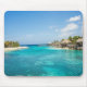 A mousepad with a beautiful photo featuring a tropical beach resort.