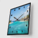 Gorgeous Blue Tropical Beach with Thatched Huts Square Wall Clock