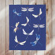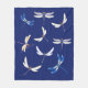 Gorgeous Dragonflies in Flight on Dark Blue Fleece Blanket