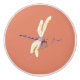 This design has a golden dragonfly perched on a branch against a terra cotta background.
