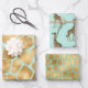 Gorgeous Giraffe Print Mint and Gold Wrapping Paper Sheets