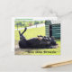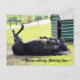 A Postcard with a photograph of a gorgeous, black horse rolling in the sand, having fun.