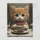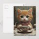 Gorgeous Kitty in Pink Pearls at Tea Postcard