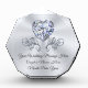 Gorgeous Personalized Diamond Wedding Gift from Groom to Bride. Gem Cut Faceted Octagon Award. Stunning and memorable wedding present from groom to bride. Type in Your Wedding Message, Couple's Names and Wedding Date or Your Text or Delete. CALL Designer Linda: 239-949-9090 to CHANGE the Diamond Design to a Different Gemstone, as available. Stunning Heart Shaped Diamond Designed printed on clear Octagon Award in 3 Sizes. Large Award Size is shown or choose the Medium or Small Personalised Diamond Themed Wedding Present.