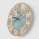 You (or Designer Linda) can change the lovely dusty soft blue green center accented by the Love Doves joining their lives together as one over the taupe colored heart. The clock is surrounded with a gentle neutral Taupe Champagne wedding color with ecru swirls.