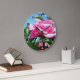 Gorgeous pink rose flower in blue sky. Floral decorative wall clock with personal touch. Add your text.