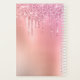 This pretty planner design features faux pink rose gold & copper dripping glitter metallic texture and elegant calligraphy font.