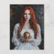 Gorgeous Red haired Woman With a Gold Skull Postcard