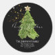 Elegant design, beautiful typography with these round Christmas Return Address Labels on dark background with Christmas tree. Perfect holiday envelope seals ...
