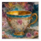 A beautiful teacup and flowers mixed media collage painting AI generated
