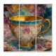 A beautiful teacup and flowers mixed media collage painting AI generated