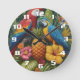 Gorgeous tropical Pineapple Parrot and flowers Round Clock