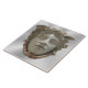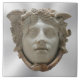 Square ceramic tile with an image a stone head of Medusa on gleaming silver.