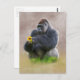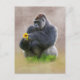A large gorilla sits in deep contemplation as he plucks at the petals of a yellow daisy or black-eyed susan flower. The sunlight shines against his back. This fantasy image is set against a muted background of browns and greens. Customize by adding your own caption, name or monogram to this animal lover’s product. The background is a modified version of one by Karens Scraps and Graphics at Digital Scrap Designs.