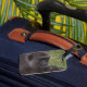 Of of the two luggage tags have some scratch on it.