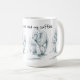 Coffee mug with a pen and ink illustration of a pouting and very grumpy gorilla. Text reads " Not until I've had my coffee. "