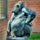 A cute gorilla looking out of a window.
