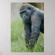 A young Western Lowland Gorilla, a magnificent representative of the great apes, stands boldly in a verdant, outdoor field. Its haunting eyes seem to reflect a deep intelligence and understanding as if it's attuned to the world in ways we can't comprehend.