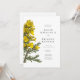 An original digital illustration of yellow gorse flowers in the style of vintage botanical sketches is featured on this invitation.