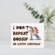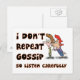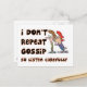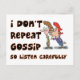 A humorous look at gossip. A cartoon of two ladies. One whispering in the others ear. The words I don't repeat gossip So listen carefully surrounds them.