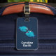 Funny fish luggage tag with a cartoon illustration of two piranha friends gossiping about the latest news in the sea world. This piranha luggage tag is great gift for kids who love fish. It has a customizable name on the from and address and telephone number on the back.
