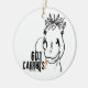 Lightweight, smooth, pure white ornament with nice sheen. Perfect size to be seen from across the room ... and to attract closer inspection! Price was great for ordering enough for the whole family! Clear, bold black design just as requested. Matches the order exactly. Just so nice!