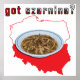 Beautiful Poland Map with red and white flag overlay and a bowl of czarnina in the center and the words Got Czarnina? above the map. Smacznego! Great gift for anyone with Polish roots.
