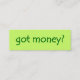 A green business card with the parody "got money?". There are a few other shades of green that work well with the image on these profile cards.