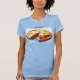 The material is a great quality that is hard to find with most tee shirts. Fabric was not see-through or thin at all, but was also very soft and comfortable. The shirt description states that it runs a little small, so I sized up one size for a perfect fit! I would definitely buy this type of tee shirt again because I love the fit and high quality fabric that I cannot find anywhere else. The printing was perfect and just as pictured. Loved the cute quote and really enjoy the tee in both the quality and design. I love quirky typography designs and funny quotes and I am extremely pleased with the overall quality and value I get at Zazzle!