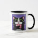 Whimsical cat mug. Sox the cat has his favorite food... shrimp! Original artwork: acrylic on canvas © 2008 Lisa Marie Robinson
