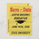 Modern bright yellow, orange and black memo style Save The Date postcard. Design includes a black graphic of a graduation hat. Perfect for jotting down notes about your graduation. Congratulations!
