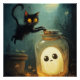 A cute cat with a ghost in a jar