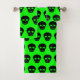 Goth Black Lime Green Skull Pattern Bath Towel Set