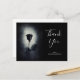 A dark and mysterious party thank you postcard with a cool illustration of a goth /emo style black rose with red dripping blood on its petals. A black grunge background with an off-white color in the center highlighting this moody and macabre rose.