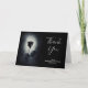 A dark and mysterious wedding thank you card with a cool illustration of a goth /emo style black rose with red dripping blood on its petals. A black grunge background with an off-white color in the center highlighting this moody and macabre rose.