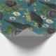 Goth Crows & Black Roses Deep Teal Pattern Wrapping Paper