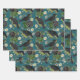 Goth Crows & Black Roses Deep Teal Pattern Wrapping Paper Sheets