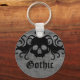 Cute key chain with a black vampire skull with fangs and swirly wings with a heart on top against a gray grungy back ground. The text reads "Gothic" but you can easily change that to your name.